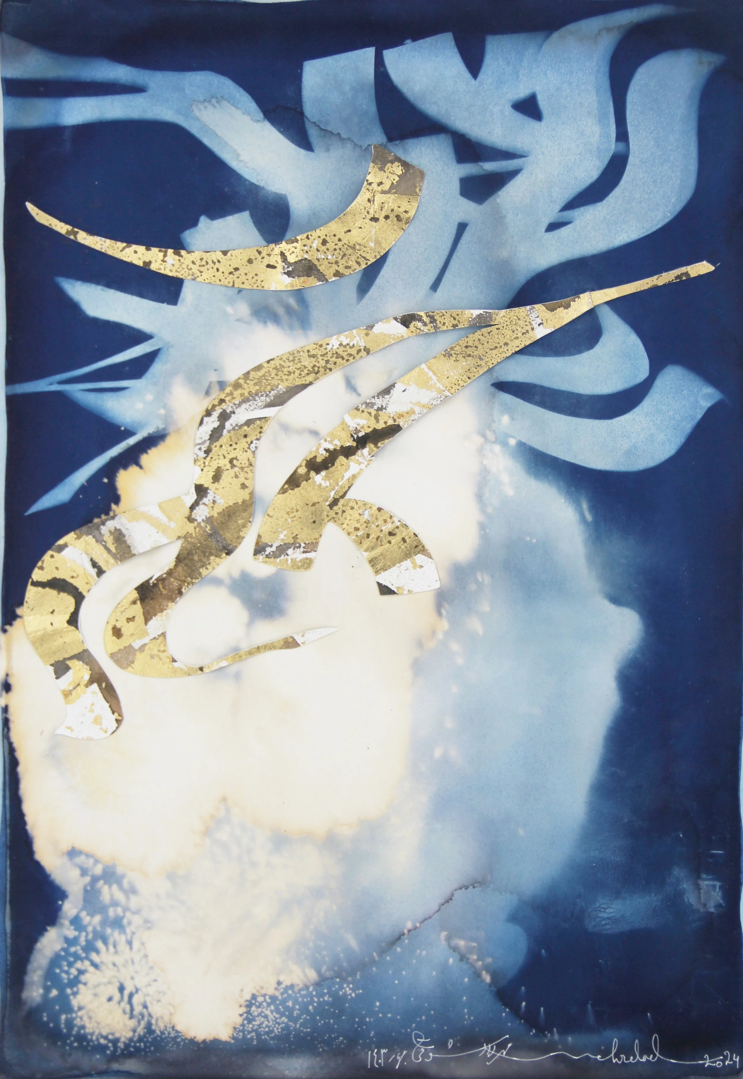 This collection celebrates the captivating interplay between light and artistic expression. Inspired by my time in Spain, I've delved into the evocative Cyanotype technique, a process that harnesses the inherent connection between light and light-sensitive mediums. Alongside these recent works, I revisit a series crafted over a decade ago using the unique Photograme method. Developed in Canada, this technique involves the delicate dance of whole-body figures, light exposure, and poetic calligraphy, resulting in a beautiful fusion of visual art and lyrical expression.