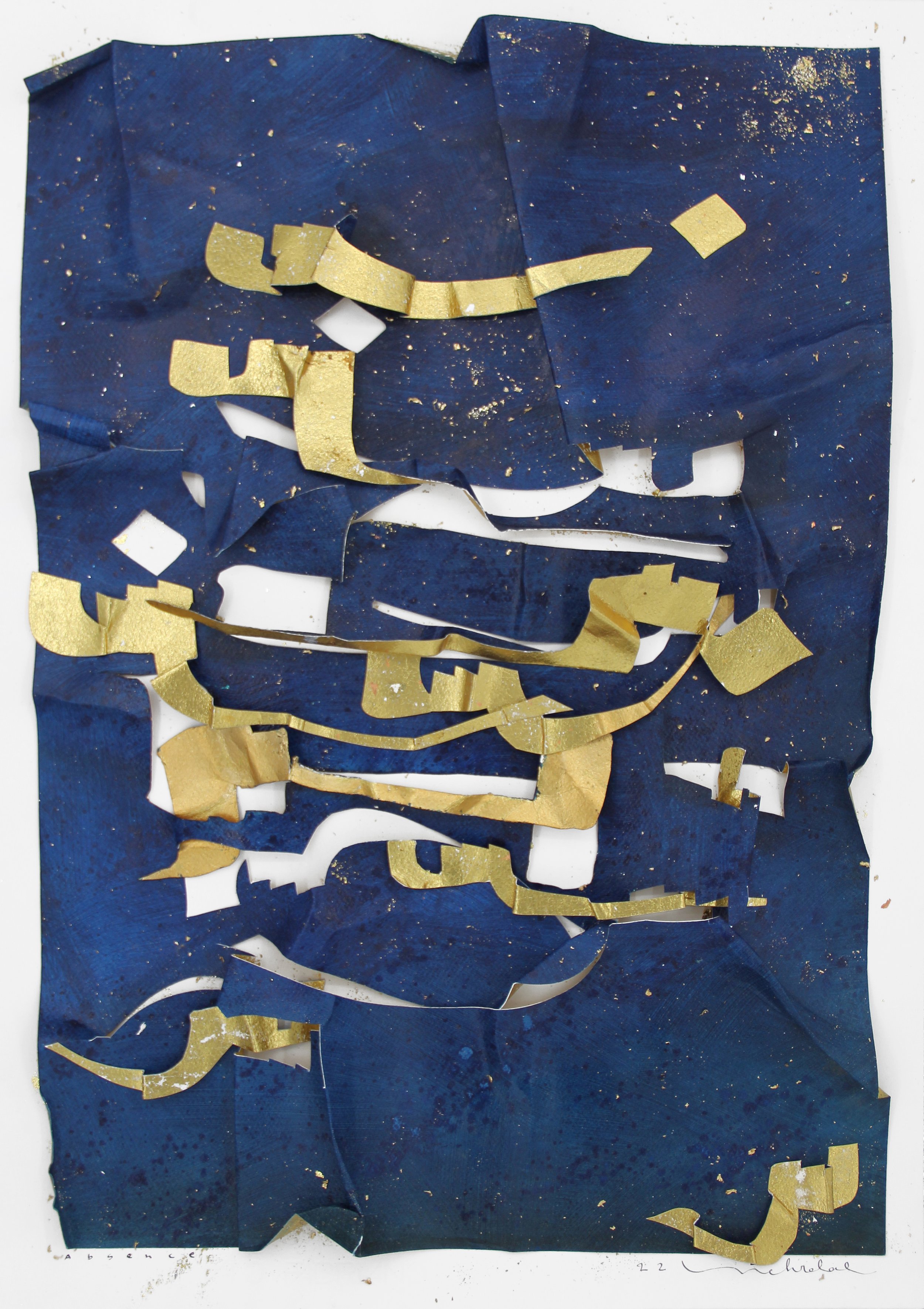 The use of fragmented calligraphic forms and sharp cuts is a visual representation of the deconstruction of language, stripping it of its surface and exposing the blankness that often lies beneath it. The empty spaces that are left behind are metaphors for the voids in our understanding, where meaning can often be found in the absence of information.